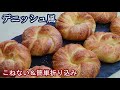 【デニッシュ風】皮はサックサク!中はしっとりふんわりバターのいい香り☆こねない&簡単な折り込み生地の作り方☆オーバーナイトでゆっくり低温発酵☆Bread that looks like pastry