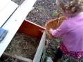 Collecting eggs from the chickens