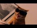 The Thug Cat hisses wearing sunglasses