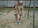 guy hits his nuts on rail and a gay walk!