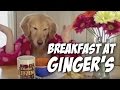 Breakfast at Ginger's- golden retriever dog eats with hands