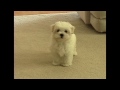 Cute Maltese puppy dog barking at funny small cat animal toy little puppies playing bark voice