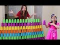 Jannie Builds COLORFUL Cup Wall & Pretend Play w/ Ice Cream Toys