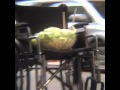 A bowl of salad in the seat of a wheelchair rolling down the street unassisted (with Diana Ross)
