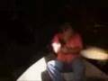fish jumping into boat