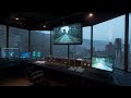 Radio Chatter on Rainy Night – Spaceport Office Ambience | Relaxing Sci-Fi Sounds for Sleep & Study