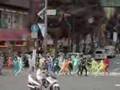 monkey on a goat on a cup on a tight rope