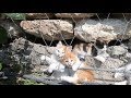 Fluffy kittens living in the cavity of the wall