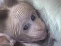 Temple Monkey Nurses Baby in My Lap While Fascinated by Camera Lens