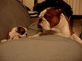 Boston Terrier dog likes his belly tickled! Funny face ~ CUTE! (Original)