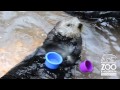 Nellie the Sea Otter stacks cups at Point Defiance Zoo & Aquarium
