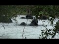 Elephants swimming