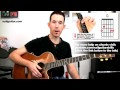 Beginner acoustic guitar lesson on strumming chords rhythms