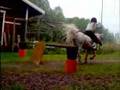 Natalie & Lina jumping behind the barn
