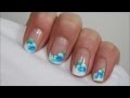 White flowers on Fluo french- April Showers Bring May Flowers- nail art tutorial
