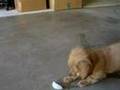 Waffle the goldendoodle puppy vs an ice cube.