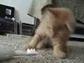 Cat attacks electric toothbrush