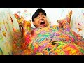 SILLY STRING SLIME BATH CHALLENGE!