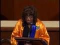 Rep. Sheila Jackson Lee talks on the phone as a woman asks a question at a town hall event