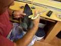 cortandole las plumas a micaela y bingo .. mis loros