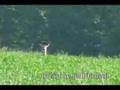A bird lands on deer's head