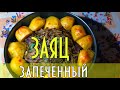 Hare baked in onions and potatoes.