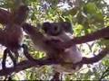Bonny Fire: koala almost falls out of her tree!