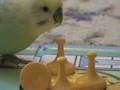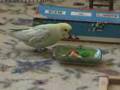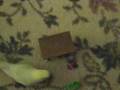 Chi-Chi budgie puts his toys away