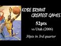 Kobe Bryant greatest games: 52pts vs Utah - 30 in 3rd (2007)