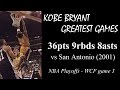 Kobe Bryant greatest games: 36pts 9rbs 8asts vs Spurs (2001 playoffs - G3)