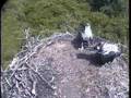 Intruder on DPOF Osprey Nest. Baby defends nest