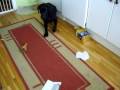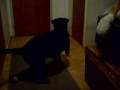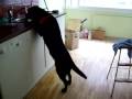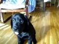 Labrador-Rose barks at her chewing bone