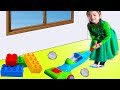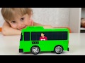 Alena and Pasha play with little Buses