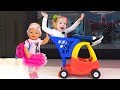 Little girl Nastya and baby doll play fun