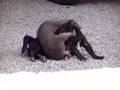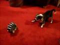 Raccoon and dog play fighting