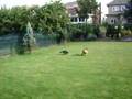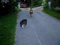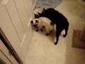 Cat chasing neighbour dog