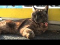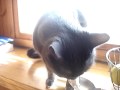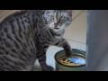 Cat says NOM NOM NOM while eating sour cream