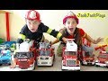 Firefighter & Police Costume Pretend Play! Fire Trucks & Emergency Vehicles for Kids | JackJackPlays