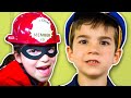 Costume Pretend Play as Firefighters, Cops and Robbers, Fishers for Kids | JackJackPlays