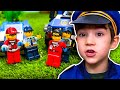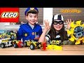 Lego City Cops & Robbers Pretend Play! Police Chase, Fire Trucks, Costume for Kids | JackJackPlays