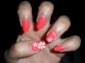Tutorial nail art semplice fiori bianchi su unghie corallo-Simple white flowers on coral nails