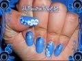 Blue Flowers on White french nail art tutorial- french elegante con fiori blu