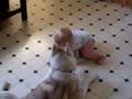 Cat gets annoyed with Husky puppy