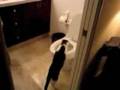 Un chat fasciné par la chasse d'eau.