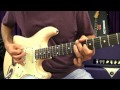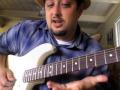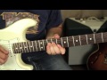 Surf melody guitar lesson on a Fender Stratocaster with tabs chords and rhythms