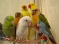 Mommy feeding baby parrotlets