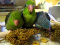 Parrotlets eating millet--4 weeks old