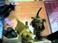 2 chickens break up rabbit fight!