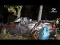 Auto völlig eingedrückt: Lenker kracht bei Unfall in Traun mit PKW gegen Baum und Oberleitungsmast