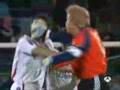 Goalkeeper tackle a supporter